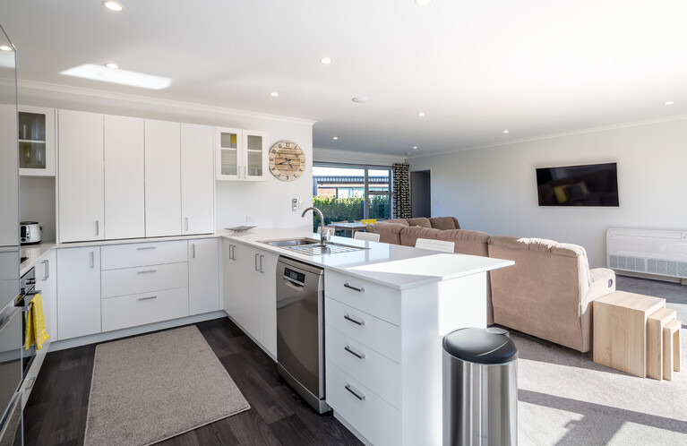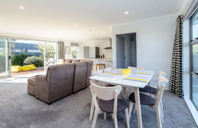 Explore the generous lounge and dining area, large screen television featuring Netflix & Sky Sports, unlimited Free Wifi to keep you amused on a rainy day. A modern kitchen with dishwasher, fridge freezer & coffee machine sits in the middle of the house allowing you to cook and entertain. 3 well appointed bedrooms, 2 with queen beds, 1 with two single beds all with electric blankets to keep you warm on those colder nights and all beautifully furnished. Master with ensuite, hair dryer and straightening irons. A laundry is also available with washing machine, iron and ironing board.