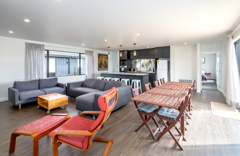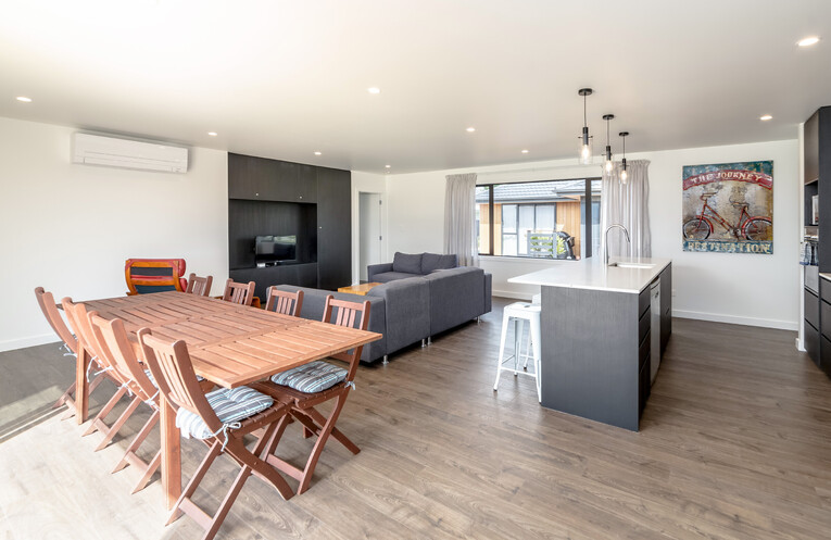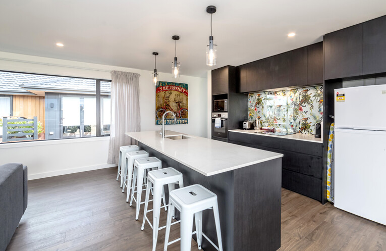 Built in 2022, 53 Burgundy is a modern four-bedroom, two-bathroom property within Pinot Grove.  It boasts fantastic indoor-outdoor living with an oversized deck off the central, open-plan kitchen/living area.  From the deck, guests can stroll a short distance to the communal swimming pool and tennis court, or take an easy walk out of Pinot Grove and down to the Square.