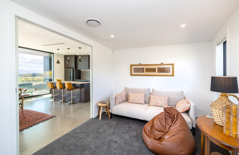 An additional self-contained queen studio offers the perfect space for guests, ensuring everyone has their own haven of peace. A comfortable queen sofa bed in the media room can be made up on request.