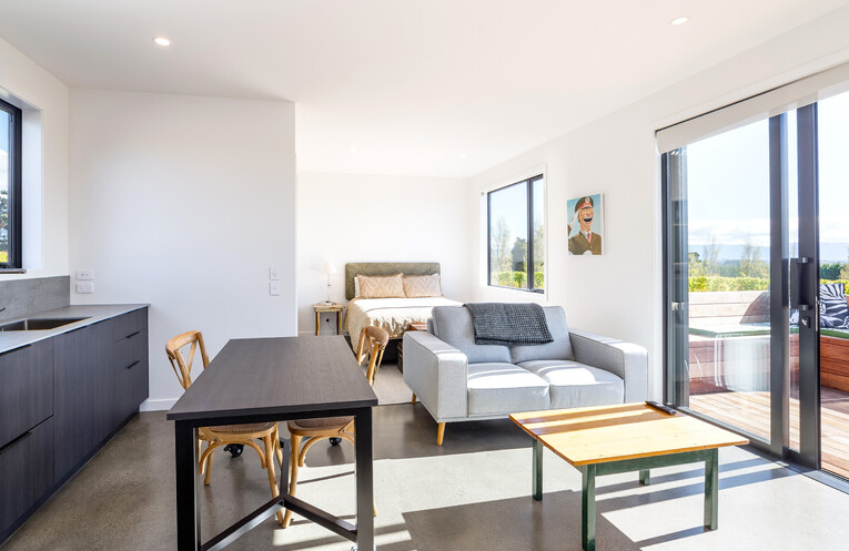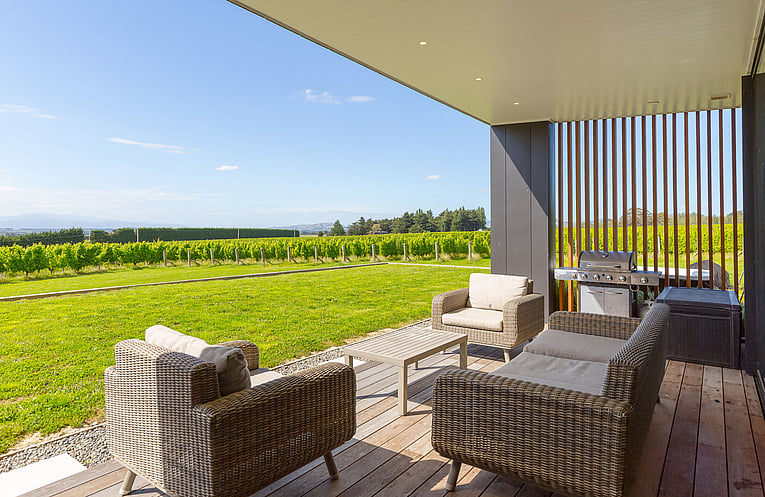 Unveiled in 2024, 89 in the Vines offers a luxurious escape in the heart of New Zealand's premier wine country. This architecturally designed retreat boasts expansive views across rolling Sauvignon Blanc vineyards, the majestic Tararua Ranges, and the ever-changing nearby hills.