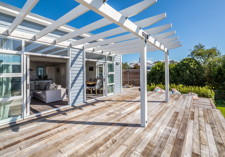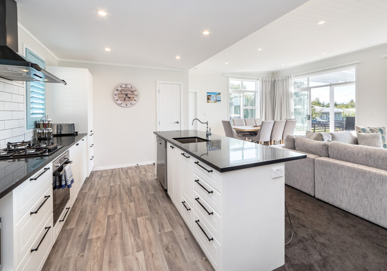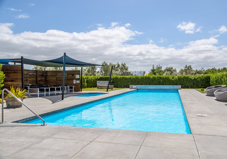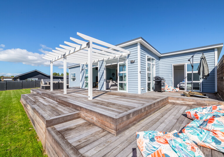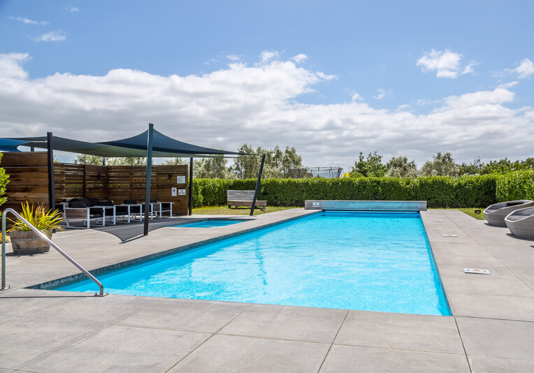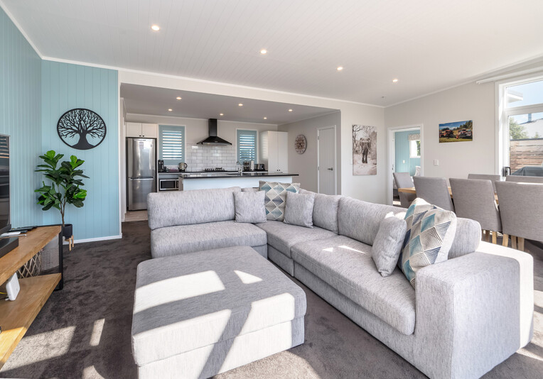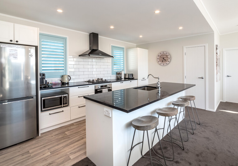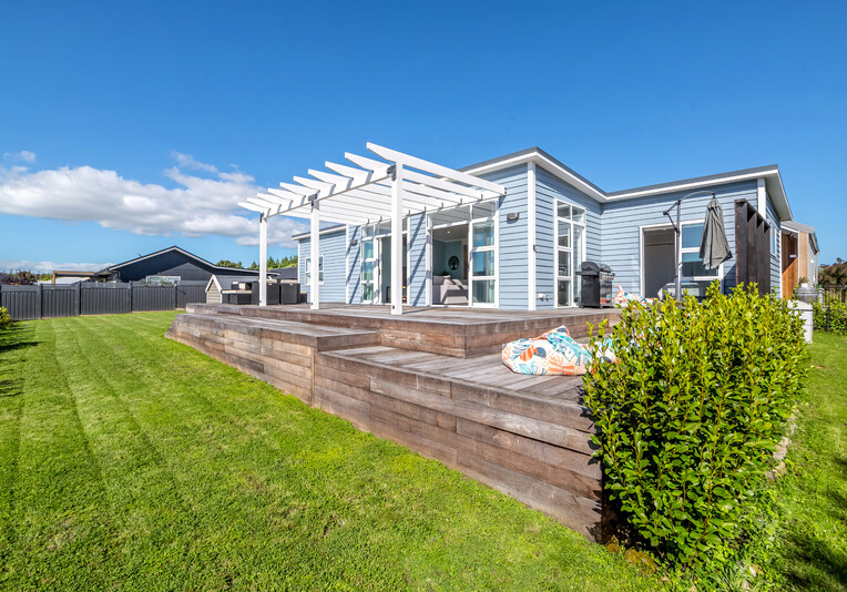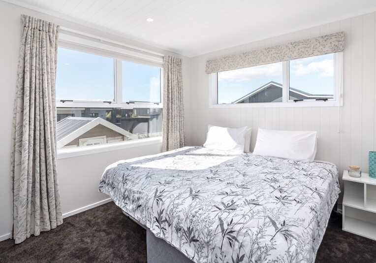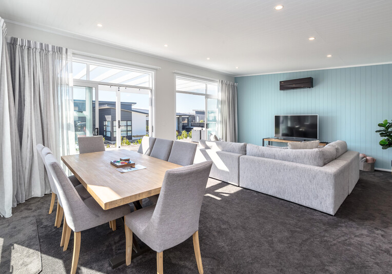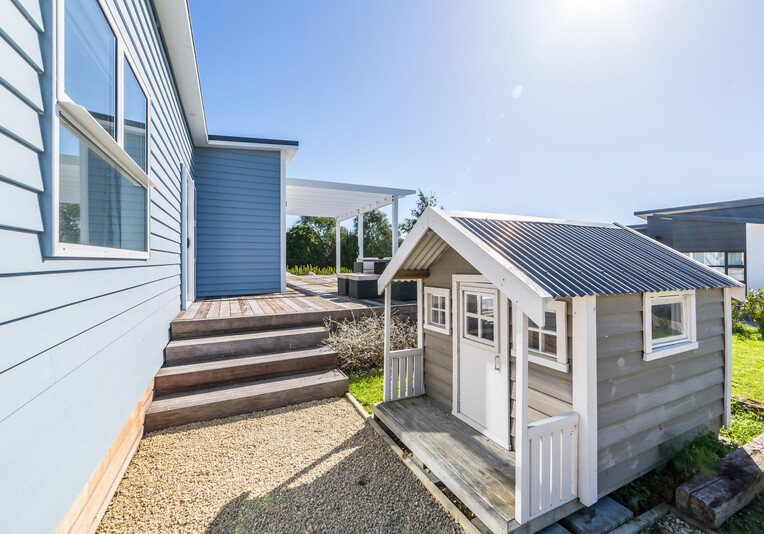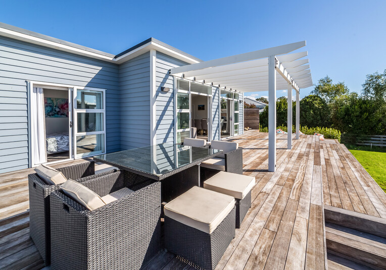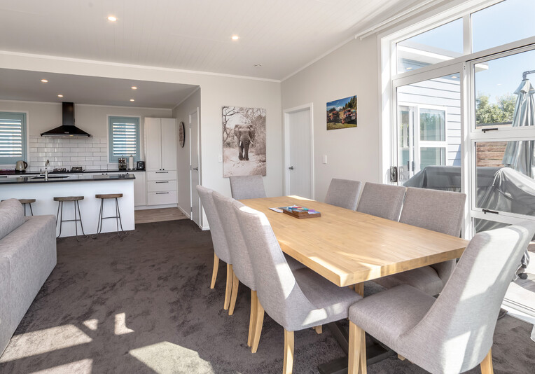 Staying here you can enjoy the large indoor outdoor living area where you can sit back and relax on the large north west facing deck with a glass of your favourite local wine or beer while watching the sunset. Or perhaps you could enjoy a classic kiwi BBQ while the kids are playing on the grass, in the wendy house or they could be down at the Pinot Grove communal swimming pool (closed from Easter until Labour Weekend), trampoline, petanque or tennis court.