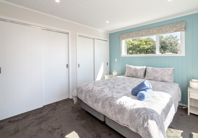 The master bedroom has a comfortable king bed and an ensuite. With its own private access onto the deck, it is a place of peace and quiet. The queen room also has private access to the deck while the two twin rooms are cleverly located as far away from the living area as possible. This allows the early to bed people to sleep while the night owls continue to share in fellowship. We have many great memories of happy times spent with family and friends in Martinborough and we hope this happy home can provide the same opportunities for you.