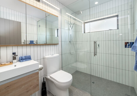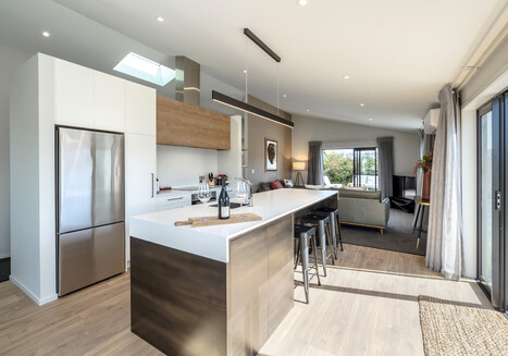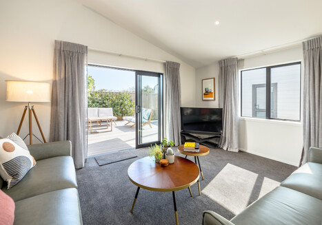 A cross between funky mid-century and modern contemporary architecture this new build (completed in 2022) has the feel of a luxury apartment. It has been purpose built with the short-term rental market in mind, with two private bedroom suites both with ensuites. This property is ideally suited as a getaway for a couple or two couples to share.