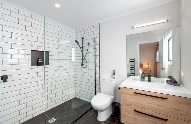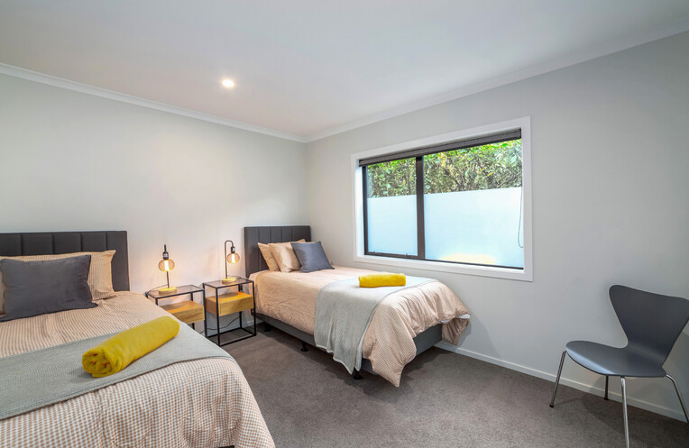 Sleeping Arrangements: Bedroom 1: Queen bed ensuite | Bedroom 2: 2 Singles | Bedroom 3: Queen bed | Additional sleeping: Queen sofa bed + Single rollaway bed | Bathrooms: 2 modern tiled bathrooms – one includes a lovely bathtub | A laundry room with a front-loader washer is also available for guest convenience.