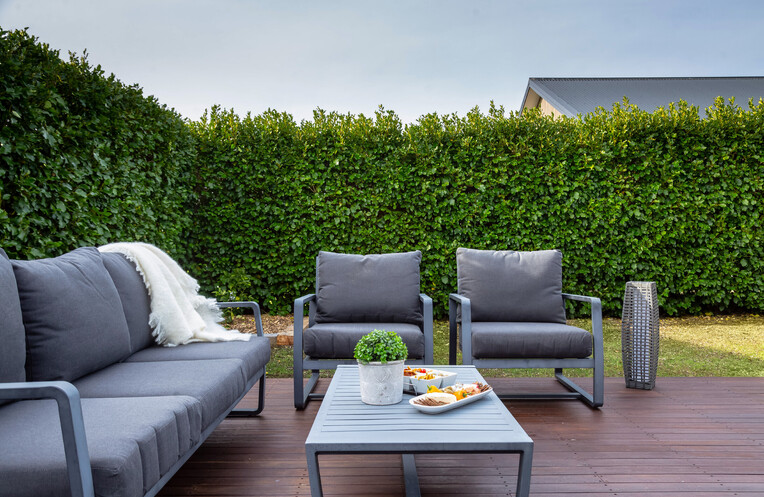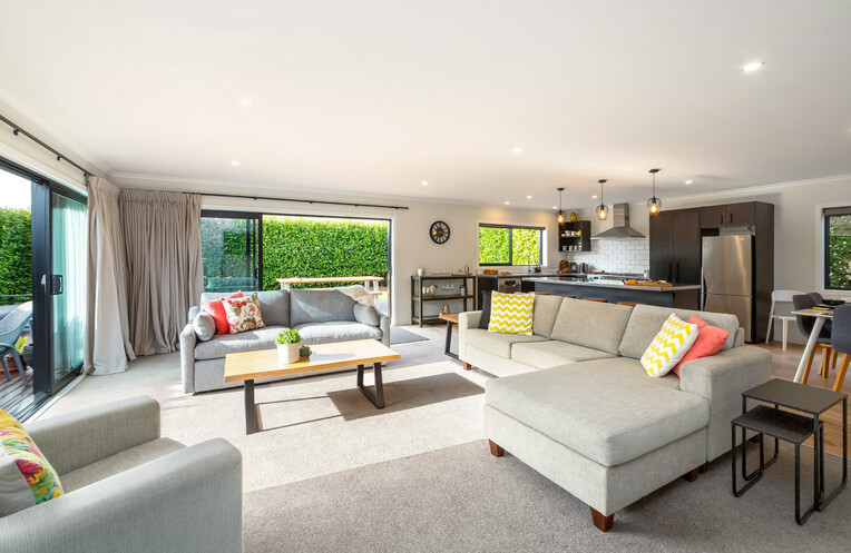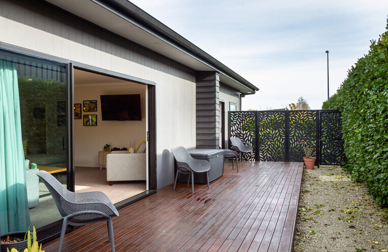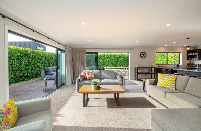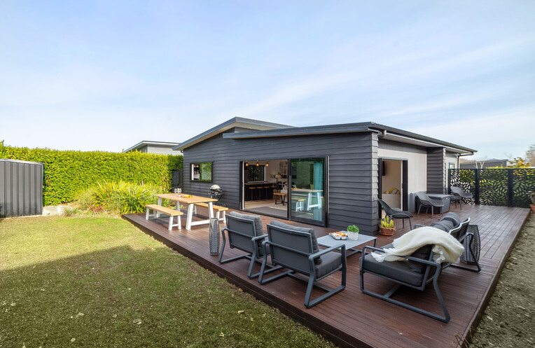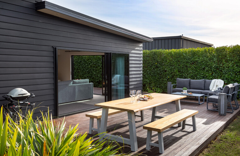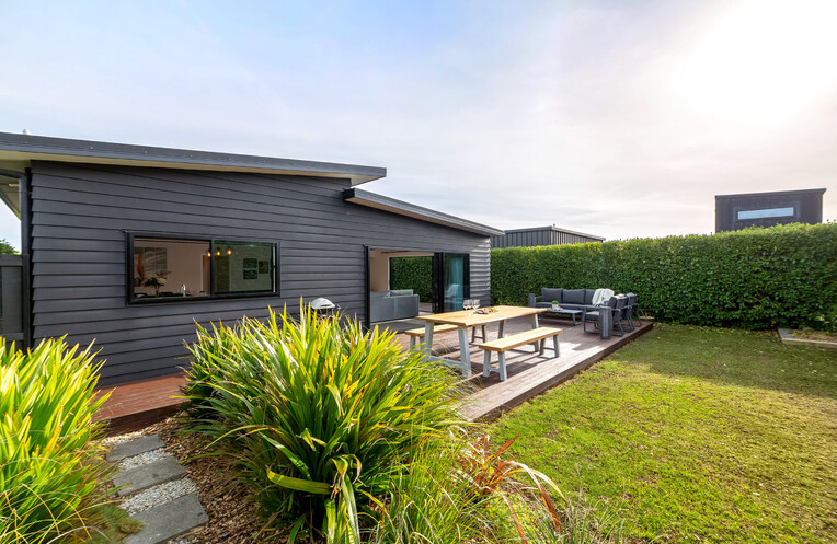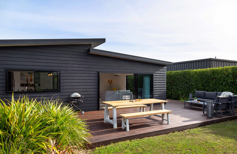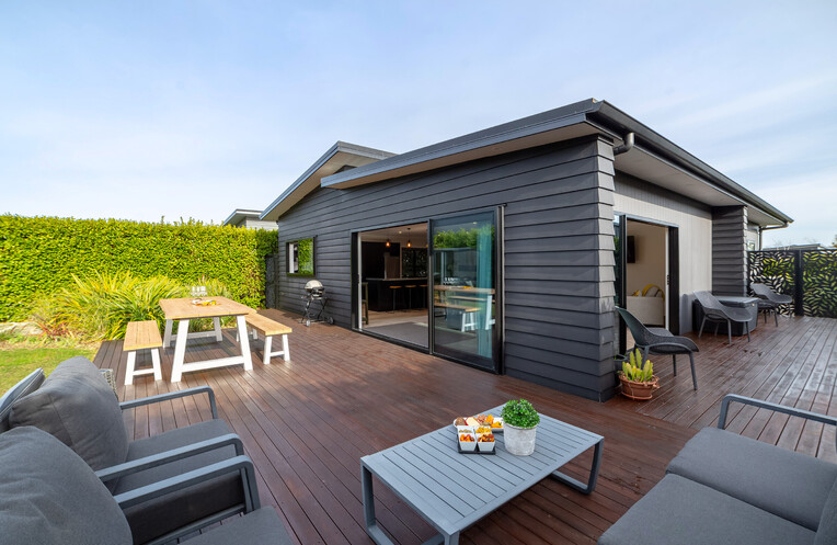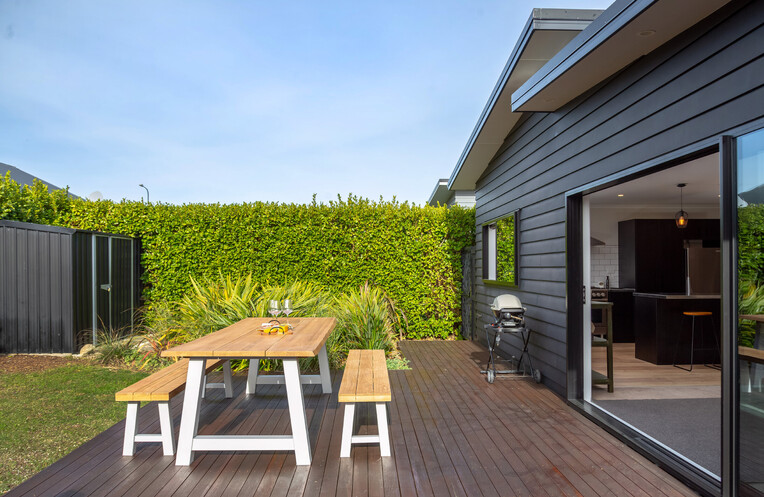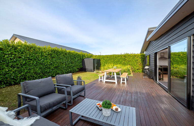 In summer, make the most of the sunny indoor-outdoor flow: open up the lounge with two large sliding stacker doors leading to a wraparound deck, cook on the BBQ, dine alfresco at the big outdoor table, or relax in the outdoor lounge area that's private and sunny – ideal for family and friend gatherings.