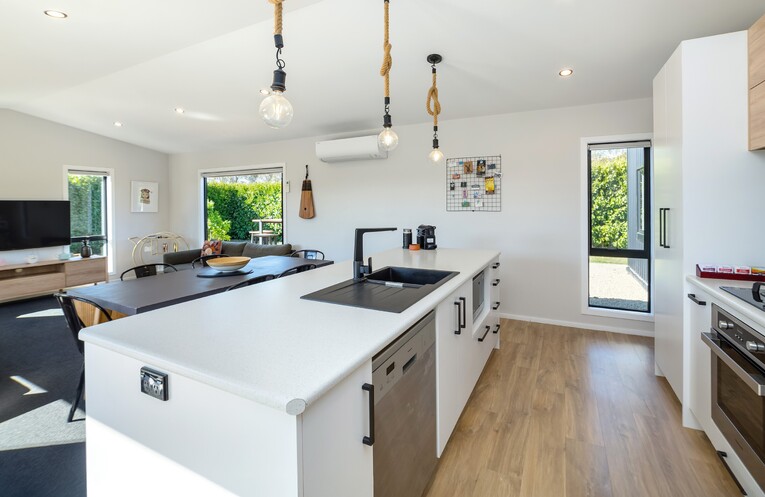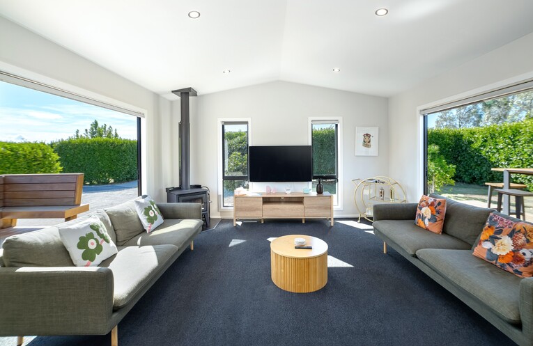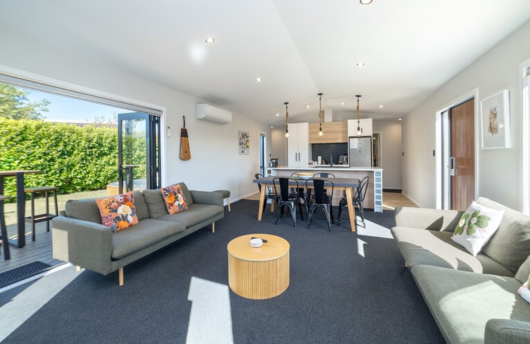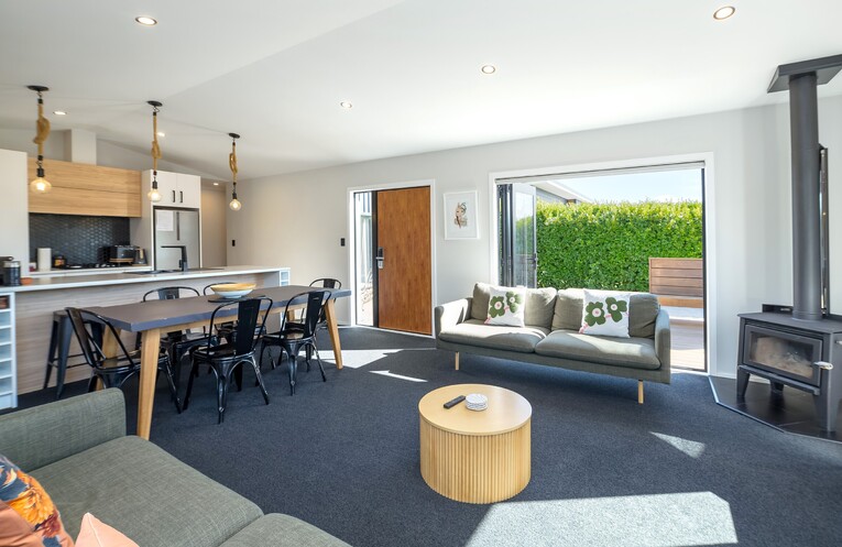 If the weather's bad or you'd prefer to hunker down inside the spacious open plan living area means there's plenty of room for everyone to pile in and play board games or find something to watch. With a fire and a heat pump to keep you warm