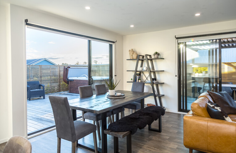 Enjoy the lovely indoor-outdoor flow with stacking doors out onto a wraparound deck designed to capture the all-day sun. A large outdoor table and chairs for those family/friend gatherings awaits. As the sun sets enjoy a soak in the modern spa pool viewing a beautiful Martinborough sunset, sitting under the stars and moonlight feeling yourself unwind with a glass of local wine.