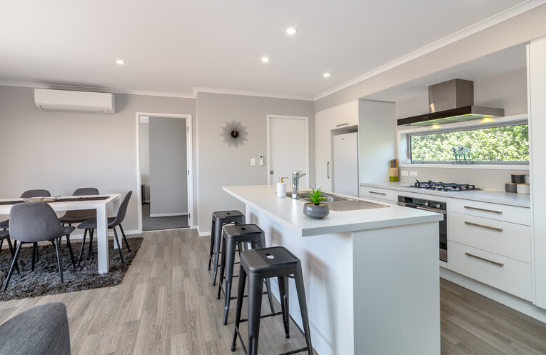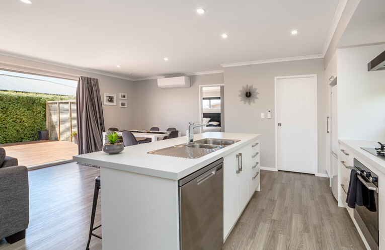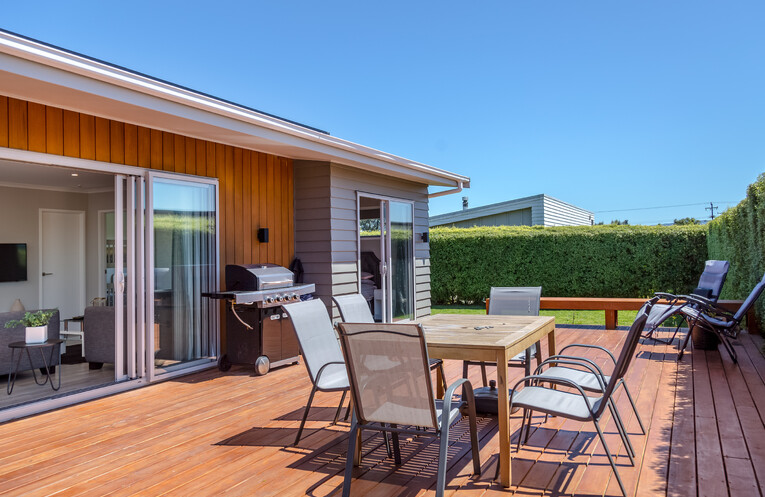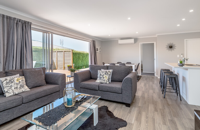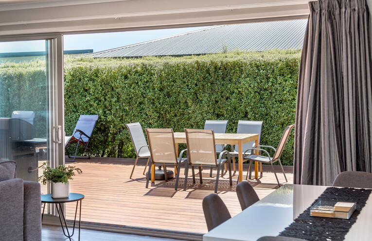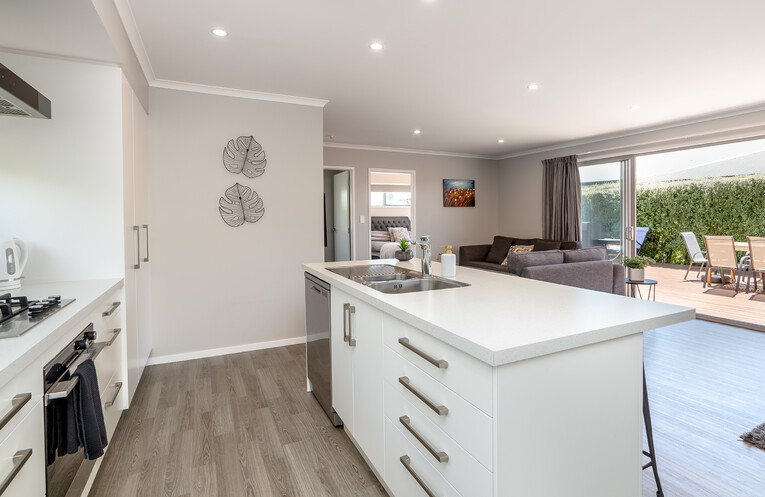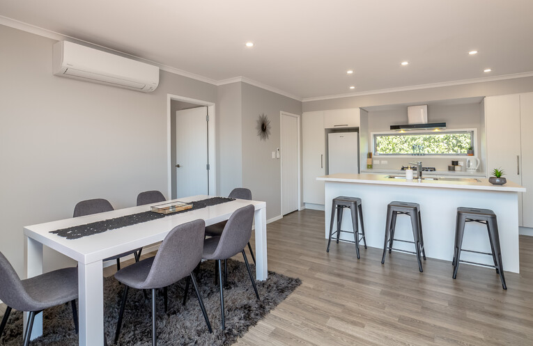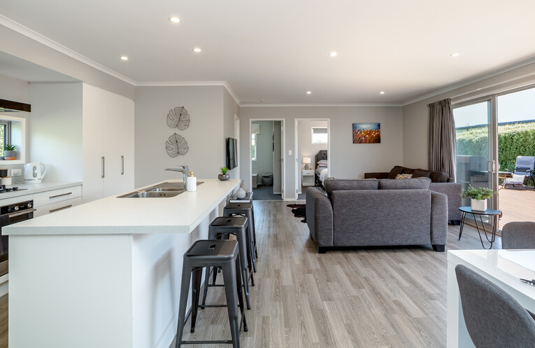 Come and enjoy a relaxing stay at our beautiful new home situated at Pinot Grove Estate. Just 900m from the town centre with wineries and fabulous restaurants, cafes and a cinema a short stroll away. Full access to a communal 20m heated pool, with separate toddlers pool (open from Labour Day till Easter) or a game of tennis at the all-weather tennis court. Keep the kids entertained with an enclosed trampoline. The large 70sqm deck provides fabulous indoor-outdoor flow.