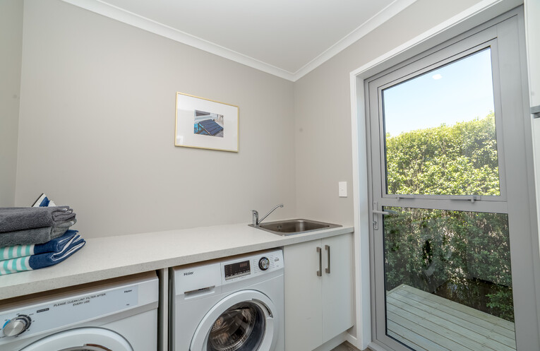 The house has a fully functional kitchen, dishwasher and full size fridge.There is unlimited fibre, a Samsung SmartTV with Sky and Netflix and a separate laundry with washing machine & dryer to help with longer stays.