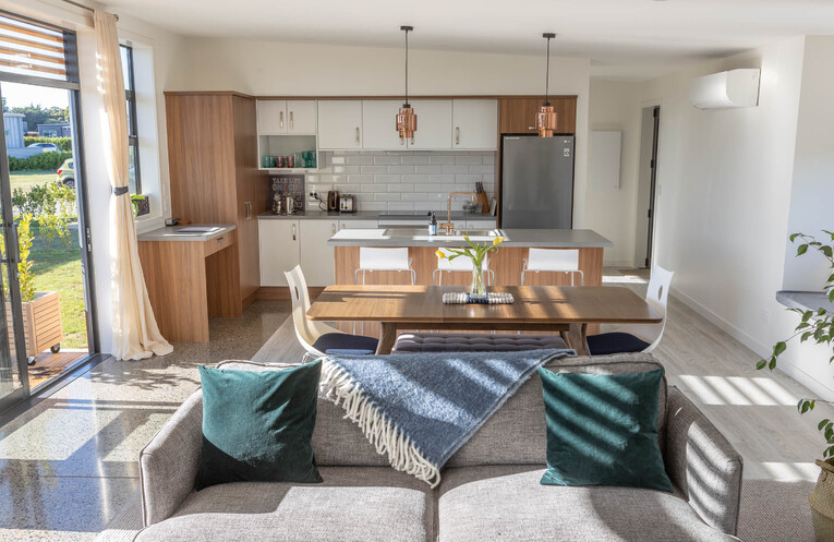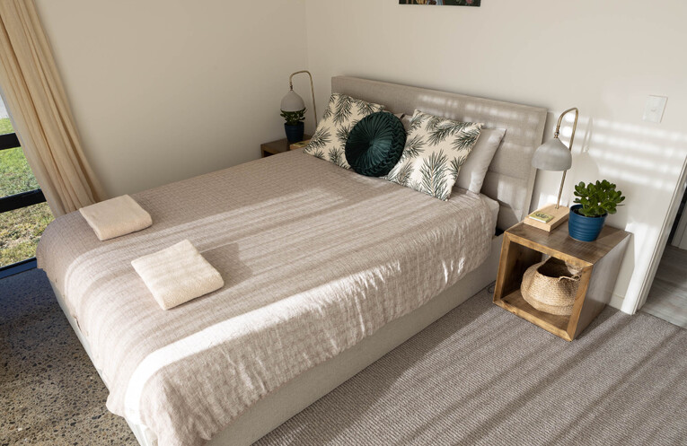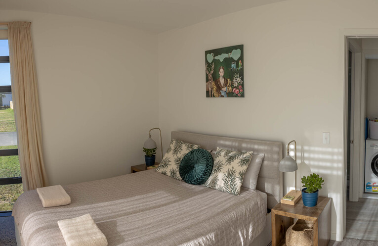 The master bedroom also features a 2-meter wide sliding door letting the outdoors in. The 2nd bedroom offers a double bed. For your comfort, there is great heating and cooling facilities for the hot summer months. Includes linen, beach towels, board games, toys, books and for the techies unlimited fibre broadband, Netflix and the latest smart tv technology. The perfect flexible luxury home for everyone, couples, families and friends. We love it here at Cloud 9 Pinot Grove and we invite you to fall in love with it too!