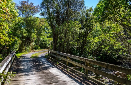 A rural escape. A forest, a stream, an orchard, paddocks. Come here to get away from it all. There's plenty of space too, so bring the family or friends.