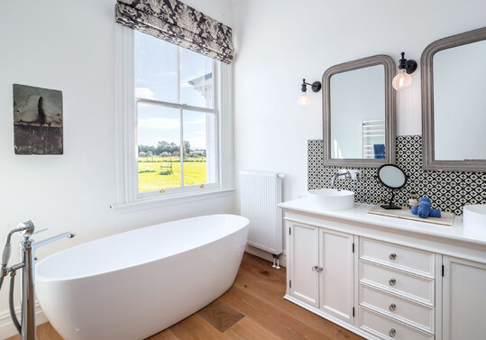 There are four bedrooms, including a master with ensuite, which opens out to a private deck and sunken spa bath - a very special place from which to stargaze.