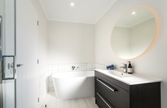 Because the house is on a rainwater supply with a single tank, be aware of how much water you use. There is enough hot water for two baths because the house is heated by a hot water cylinder, but eventually, it can run out until more can be heated!