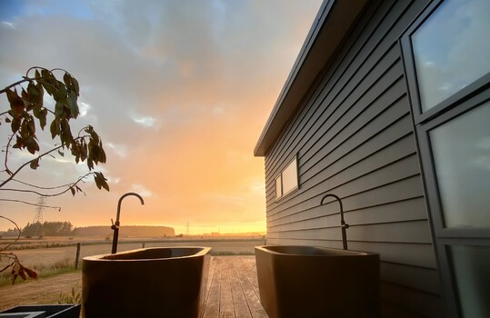 Situated conveniently between Featherston (5 mins) Greytown (8mins) and Martinborough (14 mins) you can take your pick of the best Wairarapa has to offer. Whether you're enjoying a coffee in the morning sun or cozying up with the log fire burning the Totara on Moroa is a fantastic place to base yourself. Enjoy Wairarapa's dark sky reserve the right way with the outdoor baths.