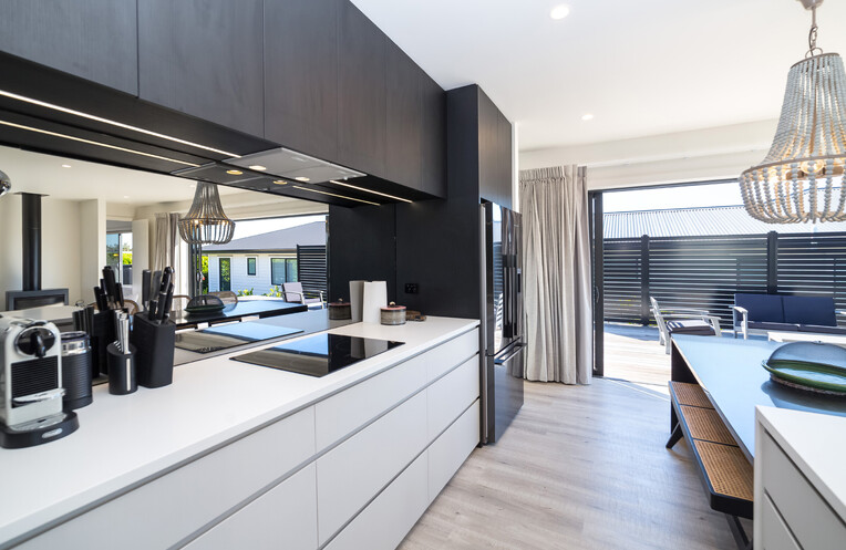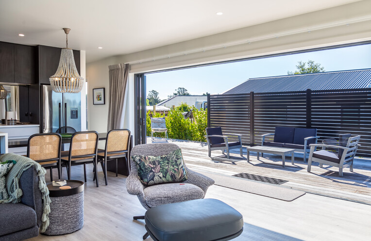 Vinebox includes a smart TV including Netflix and other streaming options, unlimited WiFi, Nespresso machine, fridge-freezer with ice maker, double oven with combination microwave, dishwasher, wine fridge, full laundry and scullery. The built-in dining table seats 6, and a further 3 on bar stools. Expansive sliding doors on both sides of the house retract to create seamless indoor/outdoor living. There’s ample parking on the driveway as well as on-street options if needed.